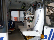 ドクターヘリの機内には、人工呼吸器や心電図モニター、電気除細動器、超音波診断機器などの装備、患者搬送用のストレッチャーや酸素ボンベなどが登載されています。
